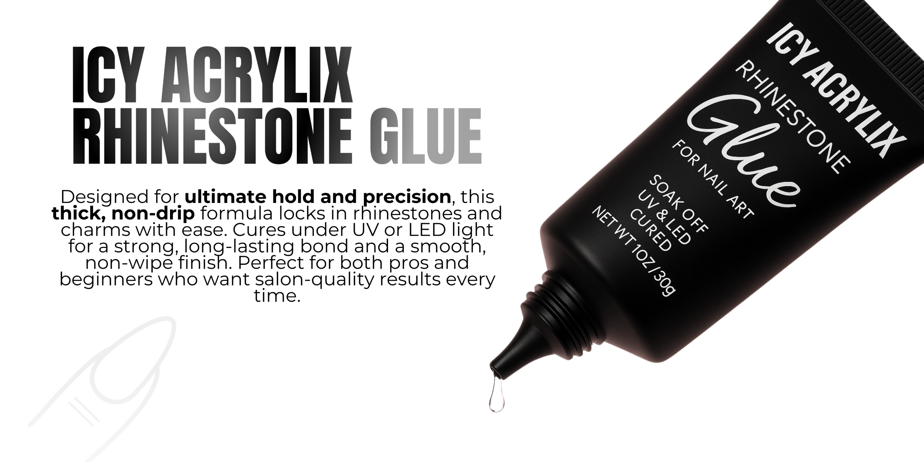 Meet your new nail essential! Our thick & controlled rhinestone glue makes nail art easier and cleaner than ever: